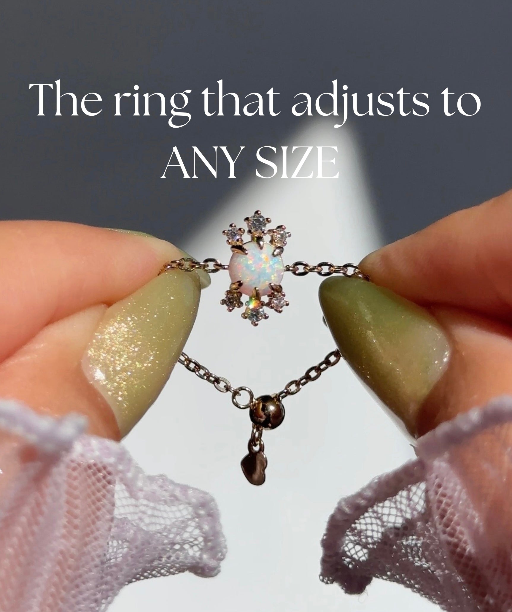 The adjustability of the ring makes it super easy to transfer from finger to finger without having to worry about it not fitting! It’s stunning! Shines and it’s just an over all beautiful ring!!!! Absolutely love it!!! Will be getting some for my girlfriends!!!