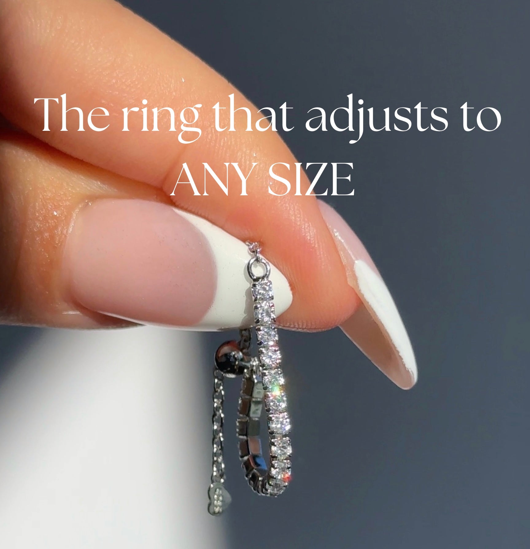 The adjustability of the ring makes it super easy to transfer from finger to finger without having to worry about it not fitting! It’s stunning! Shines and it’s just an over all beautiful ring!!!! Absolutely love it!!! Will be getting some for my girlfriends!!!