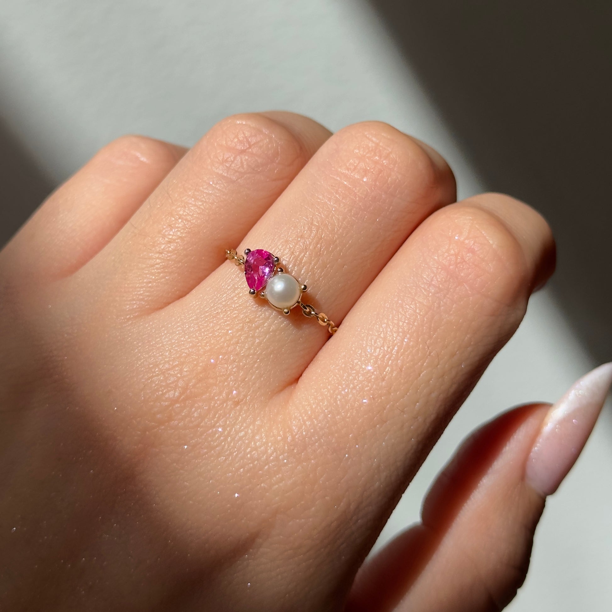 - 3mm Fresh water pearl/ Pink 5A CZ pear diamond (possesses identical reflection to a real diamond)