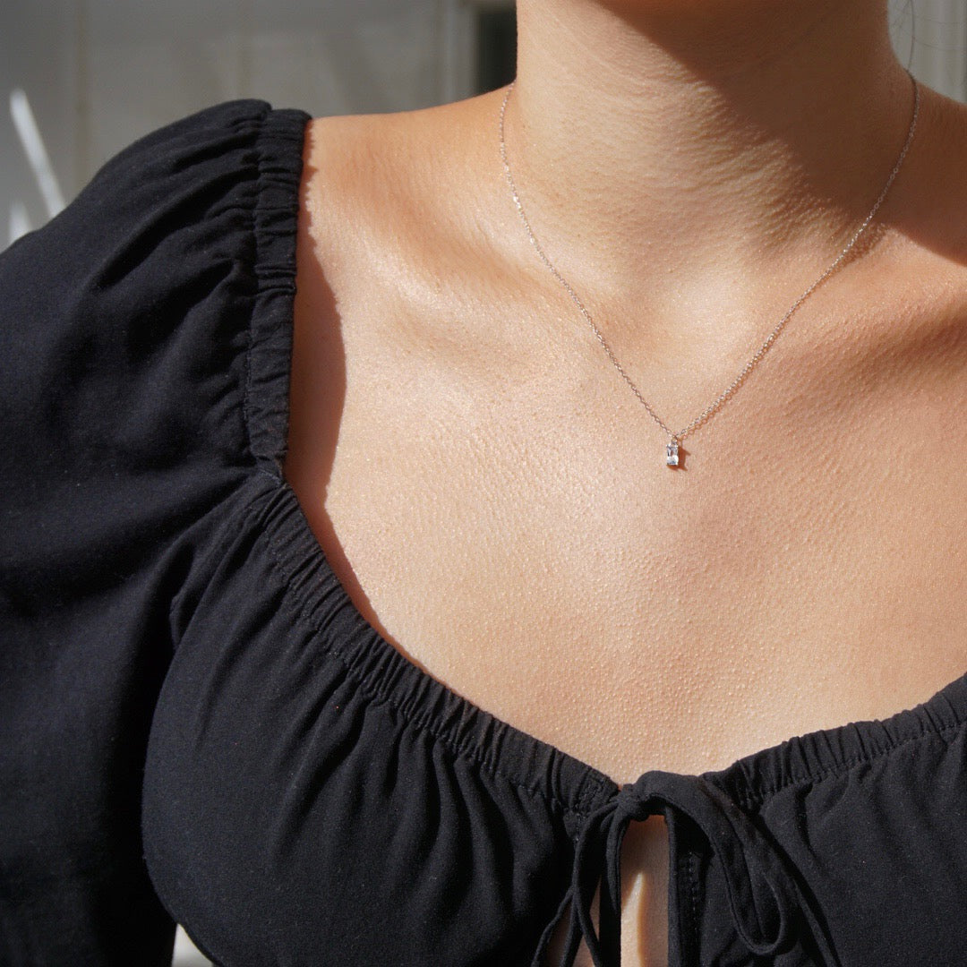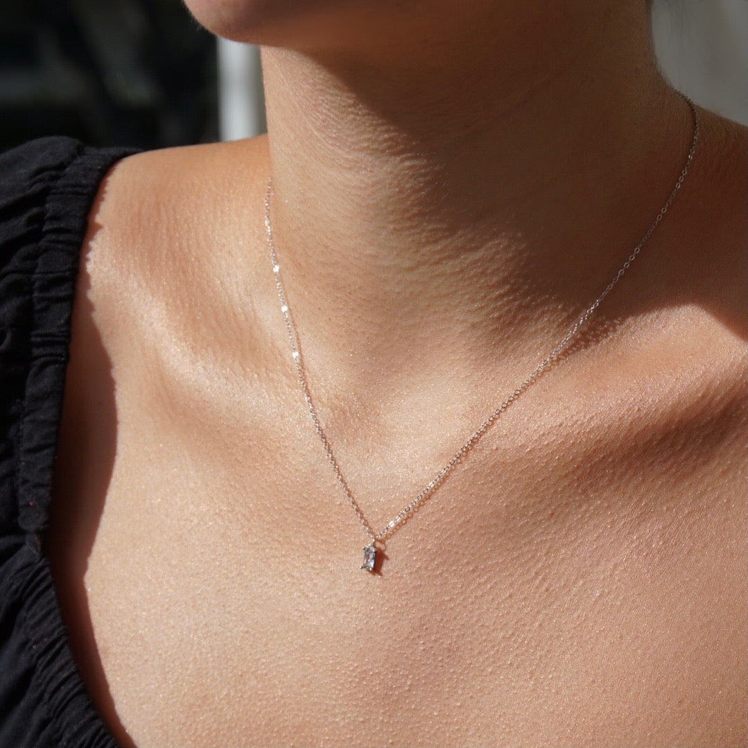 Add the perfect touch of shine to your everyday work outfits with this exquisite clear cubic zirconia diamond necklace. Gives out the perfect feminine touch without looking over glammed. The chain sparkles in the light and the water crystal gives the most perfect shine to your neck!