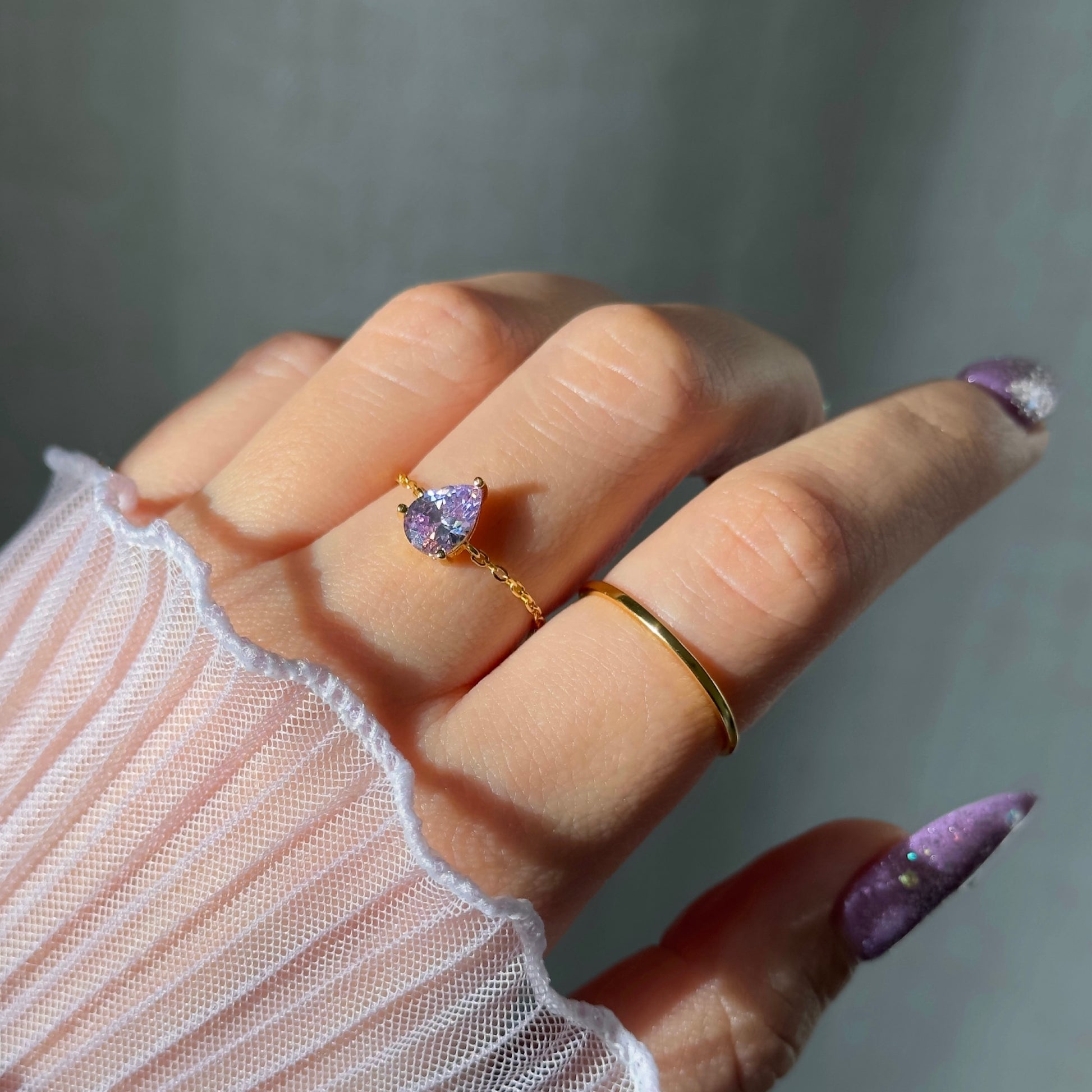 -8mm x 6mm Dusty Purple Drop Diamond: Our largest diamond ring!