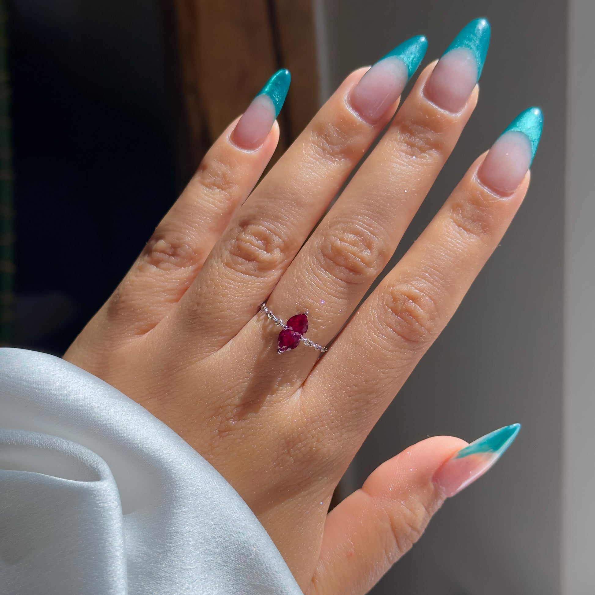 You & Me Heart Chain Ring- Ruby