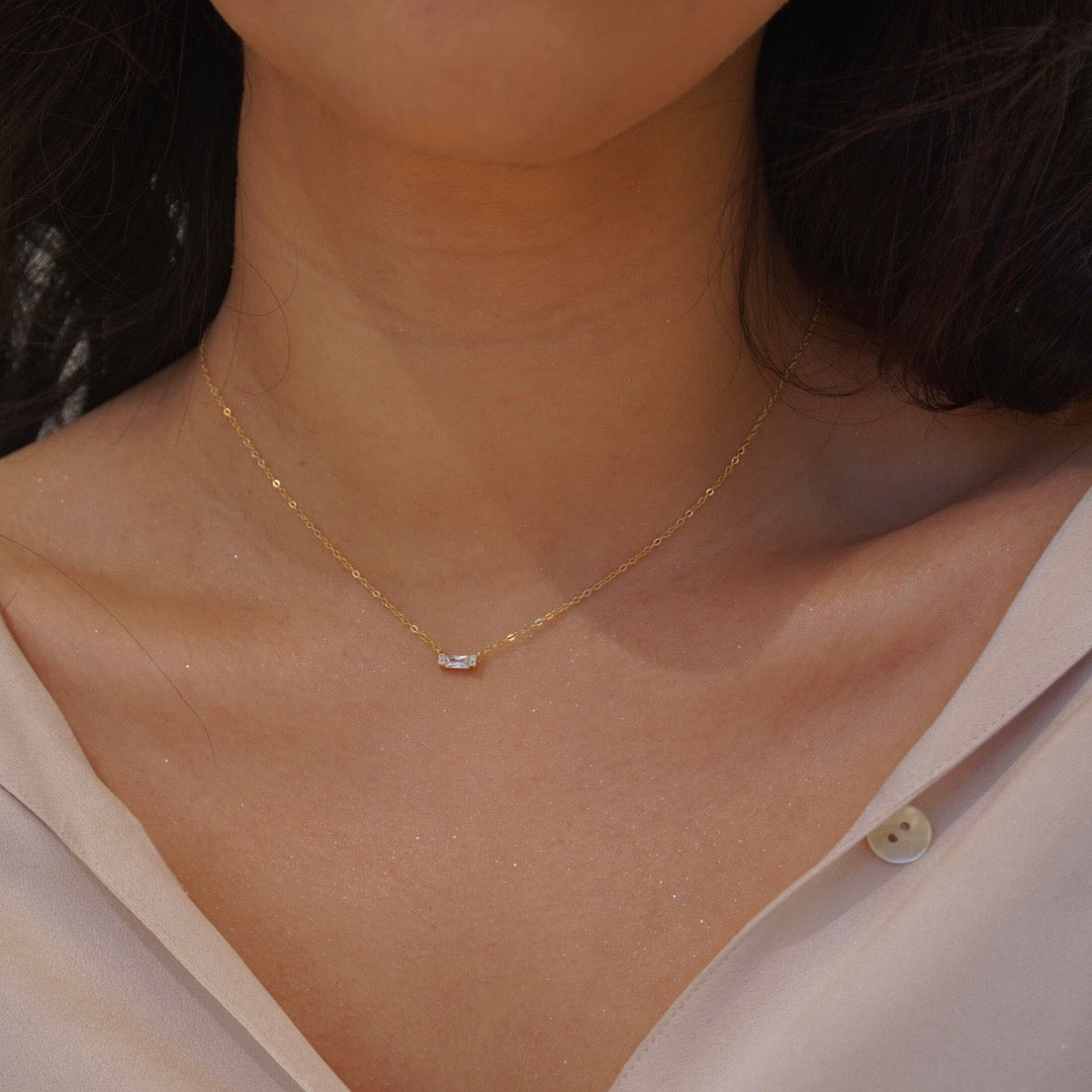 Add the perfect touch of shine to your everyday work outfits with this exquisite clear cubic zirconia diamond necklace. Gives out the most perfect feminine touch without looking over glammed. The chain sparkles in the light with every movement and the water crystal gives the perfect shine to your neck.